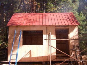 Work on the barn is moving along at a pretty good clip, and the three day weekend last week was just what we needed to get the majority of the work done. A few weeks ago our little barn was just a platform….platform
